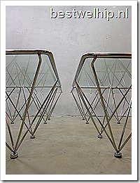 Gebruik een nieuwere versie of een andere browser. Bijzondere salontafel met prachtig geometrisch lijnspel gemaakt van glas en staal. Opvallend vintage design uit de jaren wat perfect past in een minimalistisch of industrieel interieur.