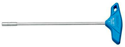 Massieve uitvoering met twee zeskant doppen. De gebogen zijde is doorboord zodat de sleutel in combinatie met een wringstaaf (b.v. afzonderlijk bestellen). Ook als T-sleutel kan worden gebruikt.