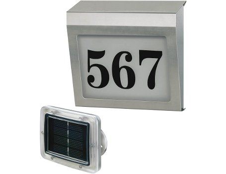 Bovendien zijn er met betrekking tot huisnummers in veel steden en gemeenten bepaalde voorschriften waaraan moet worden voldaan. Led huisnummer lamp op zonne-energie met zelfklevende cijfers en letters Met de led huisnummer lamp kan uw huisnummer optimaal verlichten en bijzonder voordelig, omdat de Wave is niet alleen uitgerust met vijf energiezuinige Nichia led’s, maar ook met een geïntegreerd zonnepaneel, dat zich in het bovenste gedeelte van het RVS frame bevindt. Huisnummer verlichting op zonne-energie.
