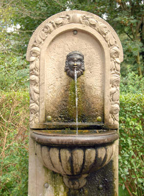 Een water tuit, die werd gemaakt in de oude template. Van stenen muurfontein tot waterspuwer. Een groot deel van de antieke fonteinen zijn stenen muurfonteinen of wandfonteinen. Het praktische voordeel is dat deze oude fonteinen aan de rand van een tuin kunnen worden geplaatst.